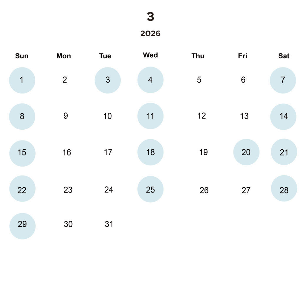 ●水曜日、土曜日、日曜日、祝日が基本のおやすみの日となります